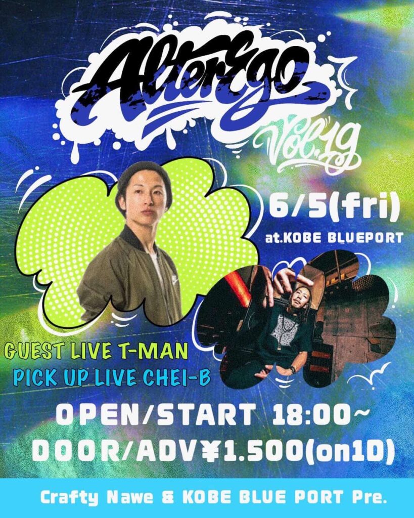 2026/06/05 Crafty Nawe presents “AlterEgo vol.19” OPEN:18:00 / START:18:00 - ADV:1500yen(on 3 drink) / DOOR:1500yen(on 3drink) GUEST LIVE :T-MAN PICKU UP LIVE : CHEI B (from 101over) ORGANAIZE LIVE : Crafty Nawe SNSでシェア!! X で共有 (新しいウィンドウで開きます) X Facebook で共有 (新しいウィンドウで開きます) Facebook