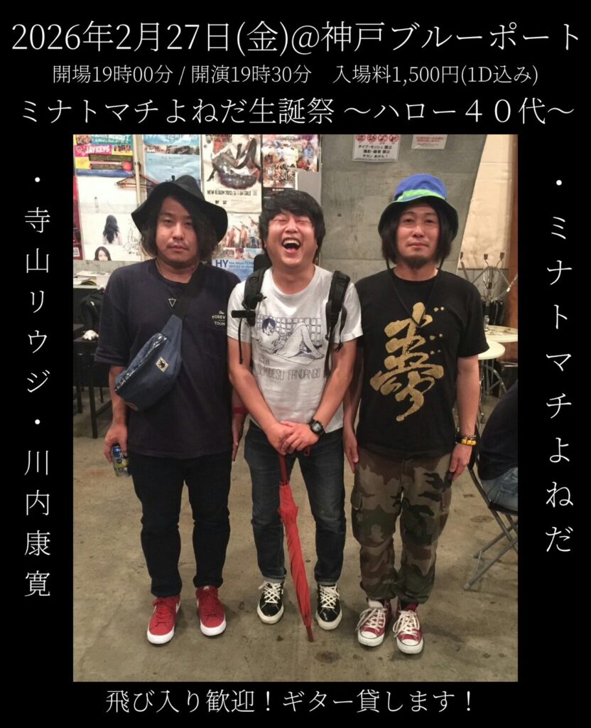 2026/02/27 ミナトマチよねだ生誕祭〜ハロー40代〜 OPEN:19:00 / START:19:30 - ADV:1500yen(1drink込) / DOOR:1500yen(1drink込) ミナトマチよねだ / 寺山リウジ / 川内康寛(Little Yard City) SNSでシェア!! X で共有 (新しいウィンドウで開きます) X Facebook で共有 (新しいウィンドウで開きます) Facebook
