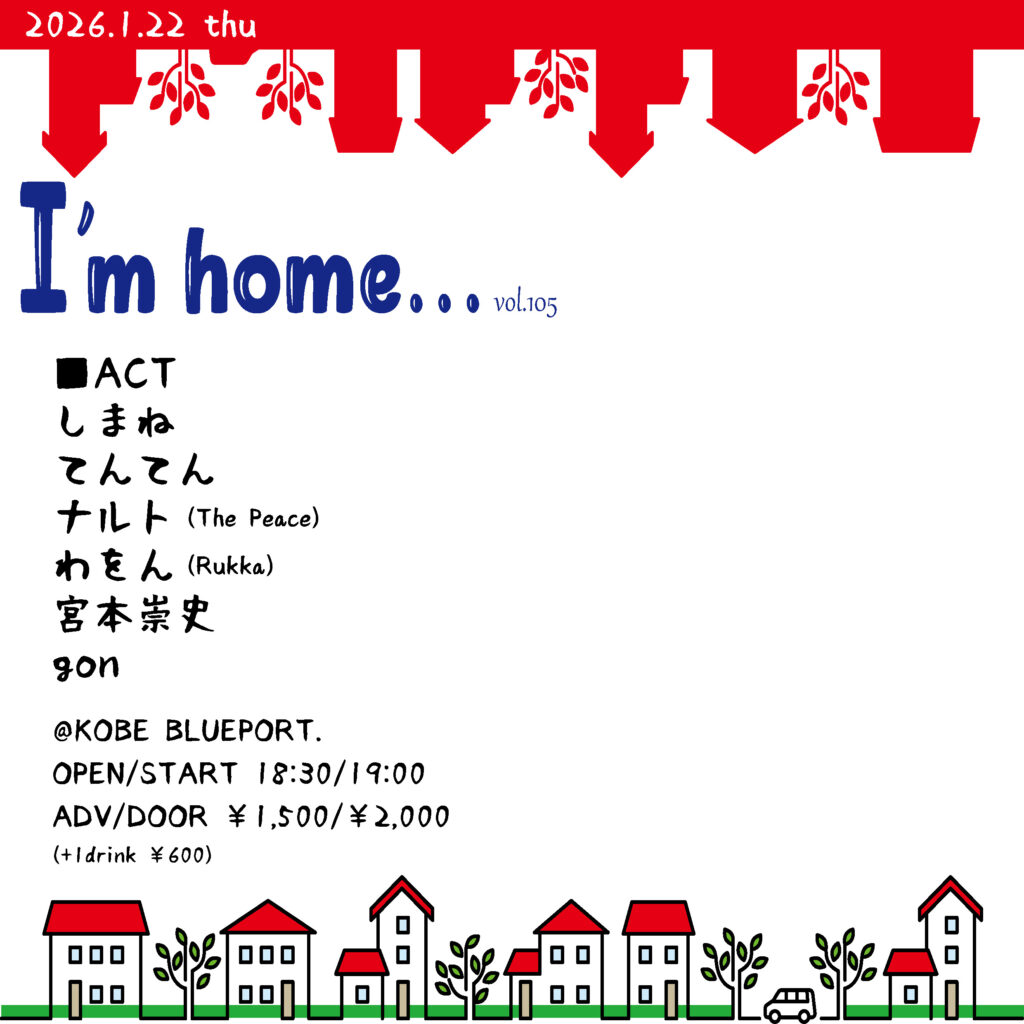 2026/01/22 I’m home…vol.105 OPEN:18:30 / START:19:00 - ADV:1500yen / DOOR:2000yen しまね / てんてん / ナルト(The Peace) / わをん(Rukka) / 宮本崇史 / gon SNSでシェア!! クリックして X で共有 (新しいウィンドウで開きます) X Facebook で共有するにはクリックしてください (新しいウィンドウで開きます) Facebook