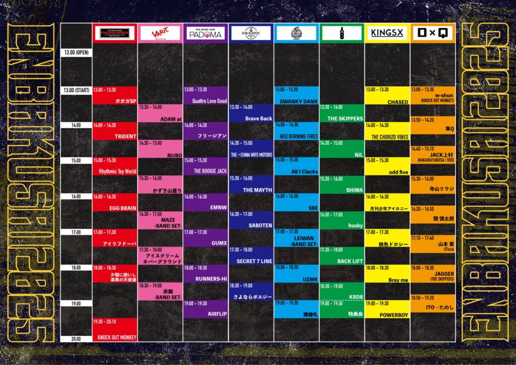 アイリフドーパ / 赤飯 / Rhythmic toy world / SWANKY DANK / THE SKIPPERS / ADAM at / AIRFLIP / All I Clacks / THE BOOGIE JACK / Bray me / THE MAYTH / MAZE SECRET 7 LINE / 裸絵札 / フリージアン / 桃色ドロシー / SABOTEN/NEO BURNING FIRES/アイスクリームネバーグラウンド / ガガガ SP/EMNW/TRiDENT/RUNNERS-Hi / CHASED/husky/THE CHINA WIFE MOTORS / LEIWAN-BAND SET-/NiL/odd five/Brave Back / Quattro Love Good/THE CHORIZO VIBES / KRD8/SBE/UZMK/POWERBOY/かずき山盛り / 月刊少年アイロニー / BACK LIFT / JAGGER(THE SKIPPERS) / JACK上村 ( HAKAIHAYABUSA / VDX) / w-shun(KNOCK OUT MONEKY) / 隼Q / 寺山リウジ / 間 慎太郎 / 山本 章(iTuca) / ITO→たのし