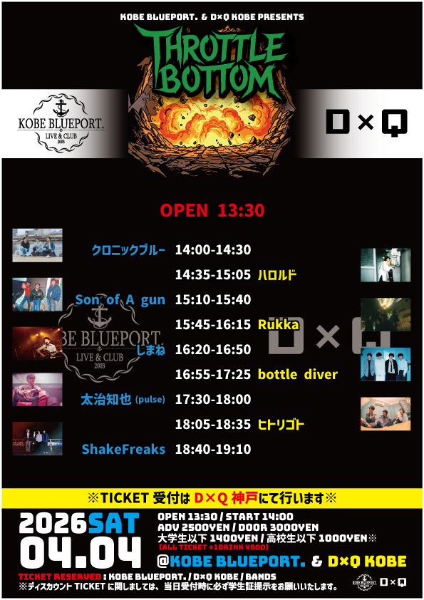 OPEN:13:30 / START:14:00 - ADV:2500yen(大学生以下200yen / 高校生以下1000yen) / DOOR:3000yen