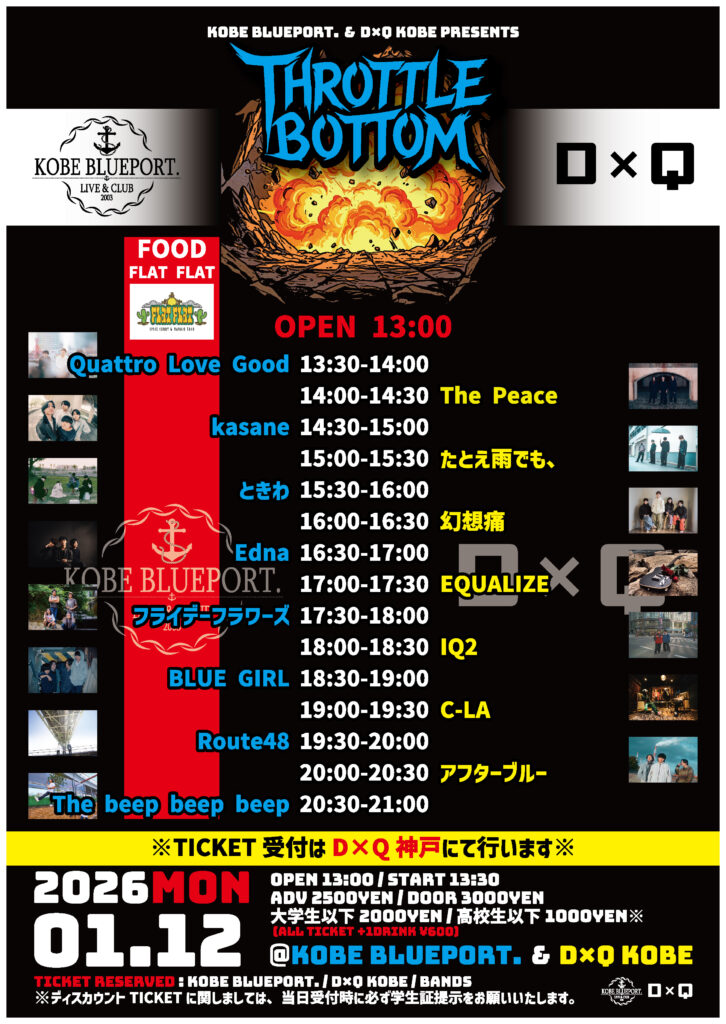 OPEN:13:00 / START:13:30 - ADV:2500yen(大学生以下200yen / 高校生以下1000yen) / DOOR:3000yen