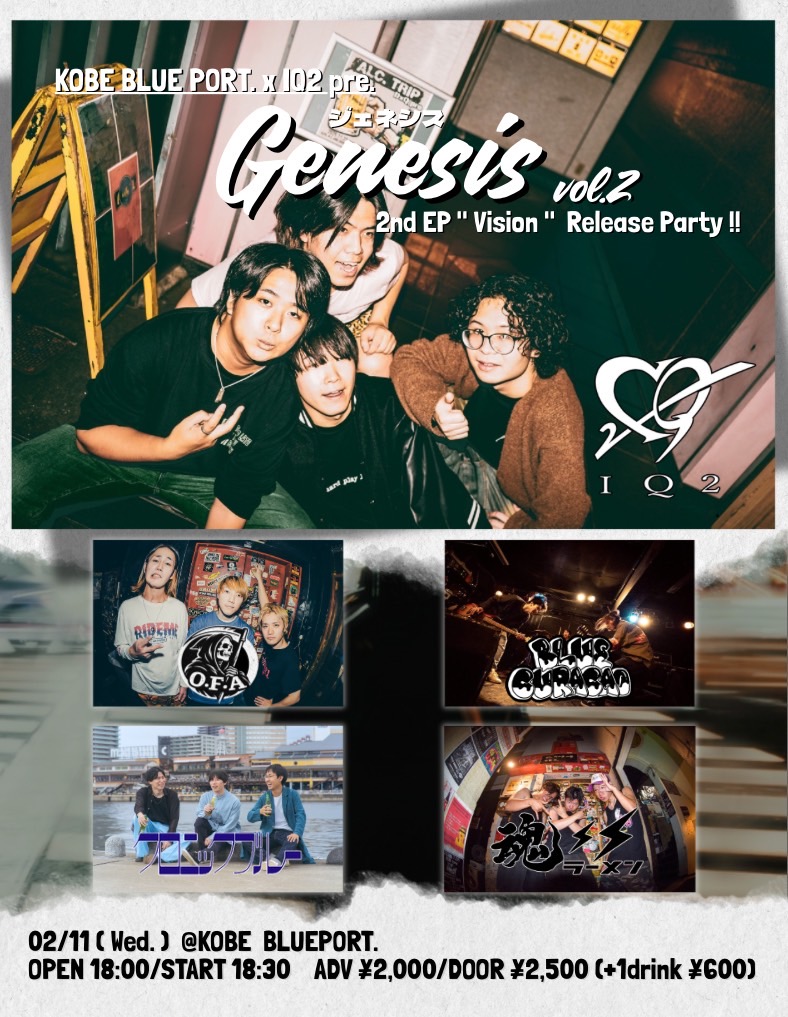 2026/02/11 KOBE BLUEPORT. × IQ2 presents “Genesis” vol.2 -2nd EP “Vision” Release Party!!- OPEN:18:00 / START:18:30 - ADV:2000yen / DOOR:2500yen IQ2 / O.F.A / クロニックブルー / BLUE CURACAO / 魂ラーメン SNSでシェア!! クリックして X で共有 (新しいウィンドウで開きます) X Facebook で共有するにはクリックしてください (新しいウィンドウで開きます) Facebook