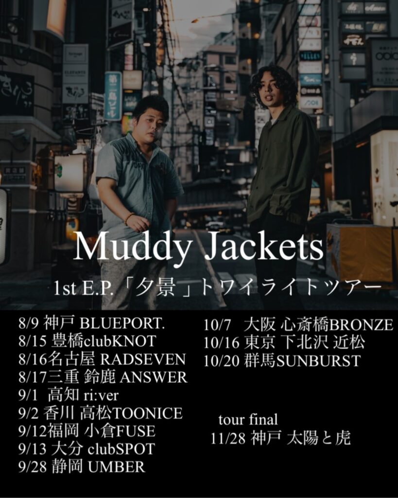 2024/08/09 Muddy Jackets 1st E.P 「夕景」トワイライトツアー OPEN:18:00 / START:19:00 - ADV:2500yen / DOOR:2500yen Muddy Jackets / Stitches / the Hz / SHARON SNSでシェア!! クリックして X で共有 (新しいウィンドウで開きます) X Facebook で共有するにはクリックしてください (新しいウィンドウで開きます) Facebook