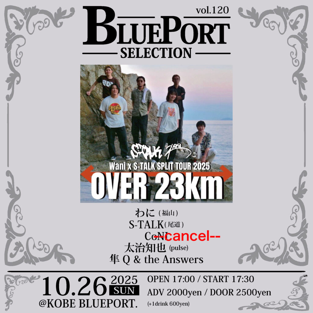 2025/10/26 BLUEPORT SELECTION vol.120-Wani x S-TALK SPLIT TOUR 2025 “OVER 23km”- OPEN:17:00 / START:17:30 - ADV:2000yen / DOOR:2500yen わに(福山) / S-TALK(尾道) / 太治知也(pulse) / 隼Q & the Answers *出演予定でしたCoNIはキャンセルとなりました SNSでシェア!! クリックして X で共有 (新しいウィンドウで開きます) X Facebook で共有するにはクリックしてください (新しいウィンドウで開きます) Facebook